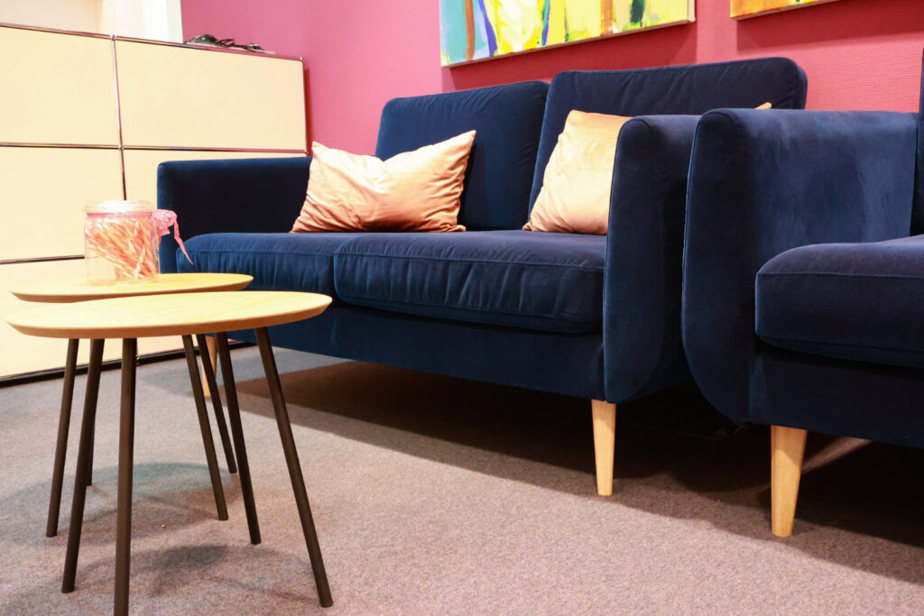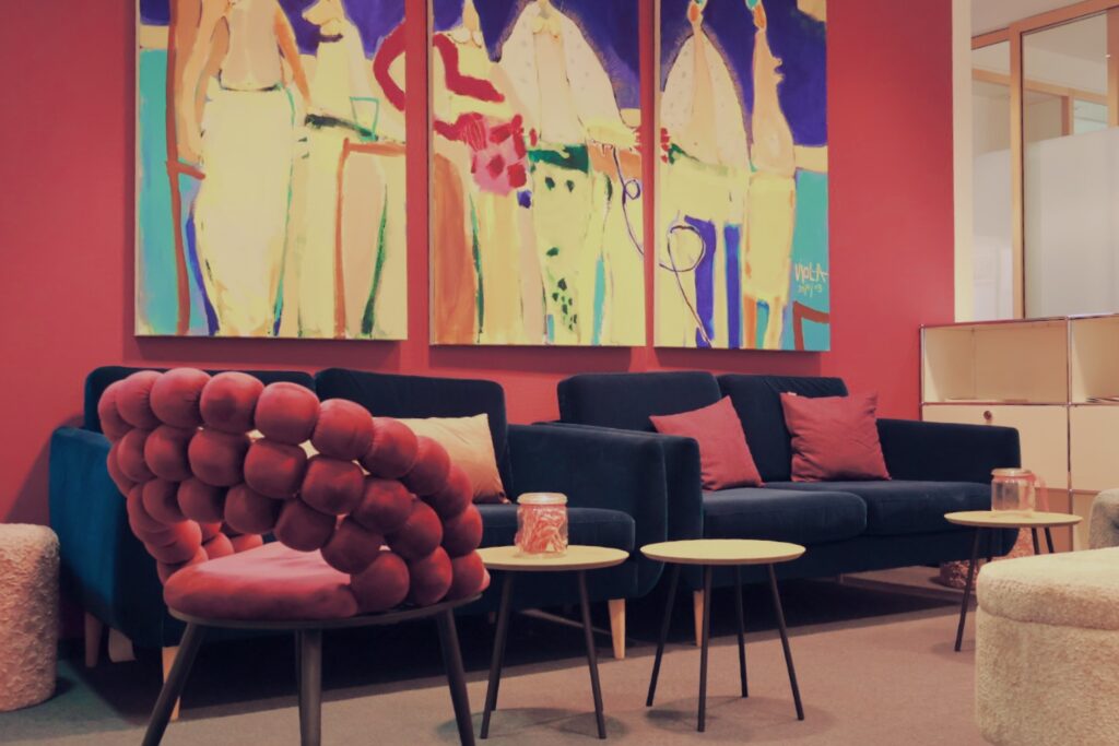 Der gewonnene Raum schafft Platz für Neues: Unser neuer Loungebereich bildet das Herzstück der Kanzlei. Er bietet eine frische, dynamische Atmosphäre für interne Meetings, kreative Besprechungen und den gemeinsamen Austausch.